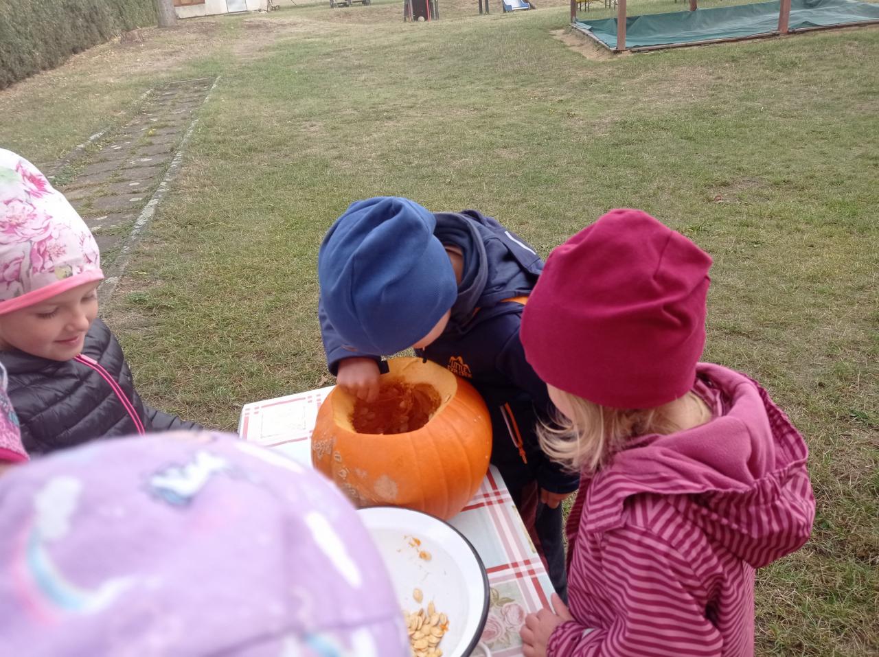 V pondělí 30.10.2023 proběhl v mateřské škole projektový den HALLOWEEN. Děti v tento den přišly v helloweenském převleku, hrály hry a plnily různé úkoly. Moc jsme si tento den užili. Děkujeme rodičům za krásné převleky.