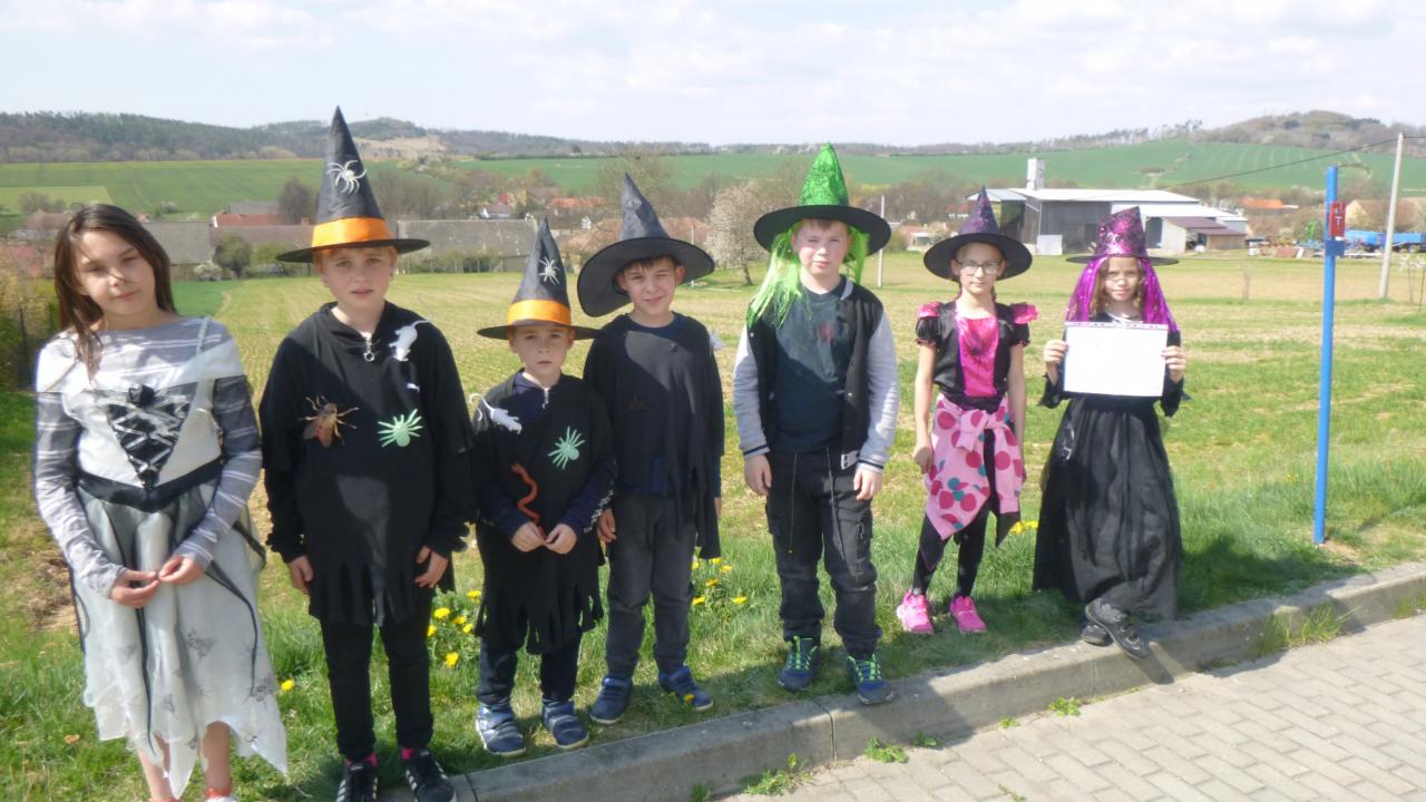 V pátek 29.4.2022 si děti užily čarodějnické dopoledne. Nejprve si zasoutěžily ve škole, pak vyrazily na stopovanou po vesnici. Podle mapky své obce musely vyhledat 24 obrázků. A co bylo nejdůležitější - vydařilo se překrásné jarní sluníčkové počasí!