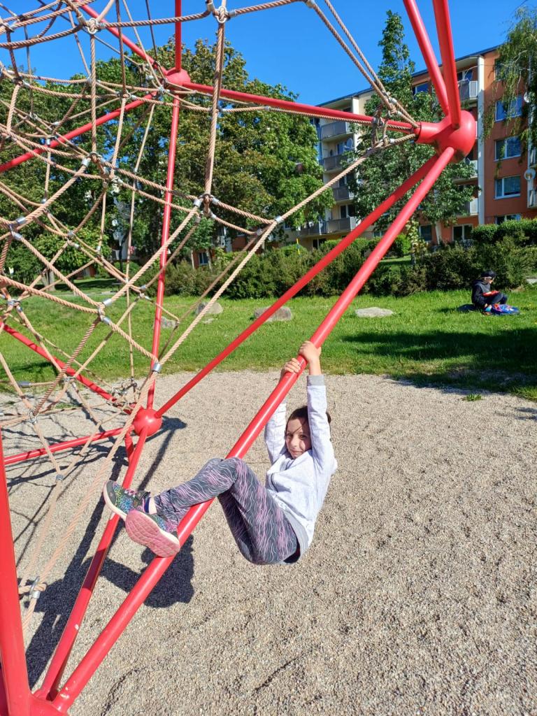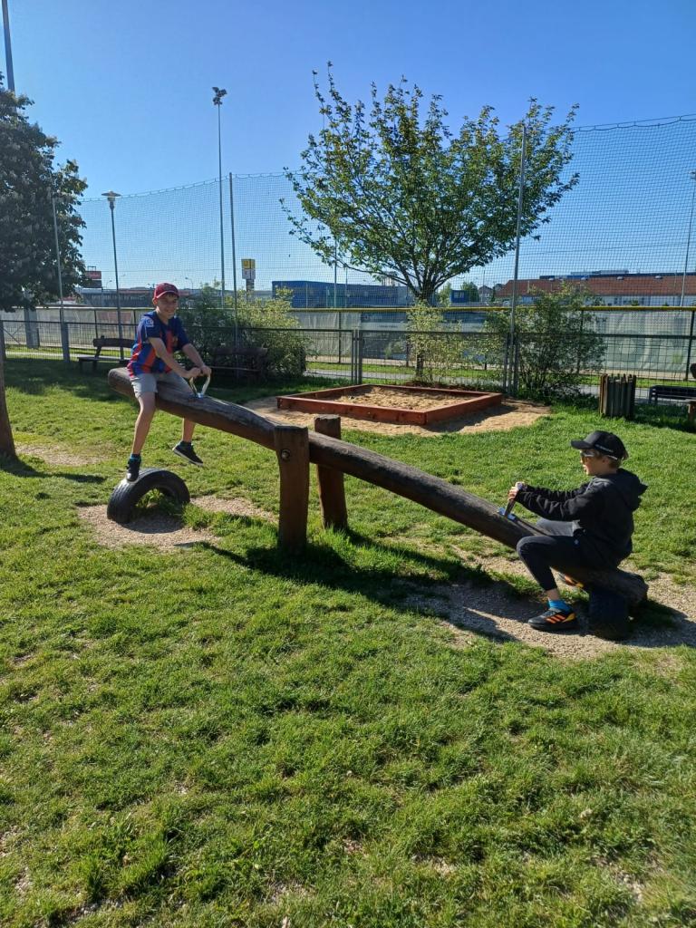 Děti, které nesportovaly na olympiádě, podnikly vycházku po Třebíči. Nechyběla návštěva dětského hřiště i zmrzlinka!