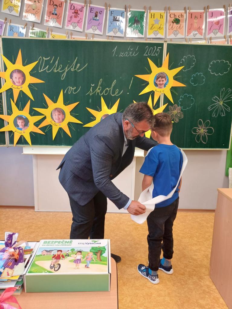 V pondělí 1.září 2025 jsme slavnostně zahájili nový školní rok. Přejeme dětem hodně elánu a radosti z učení. Nejvíce vítáme prvňáčky: Aničku, Amálku, Emilku, Jiříka, Hynečka a Martínka!