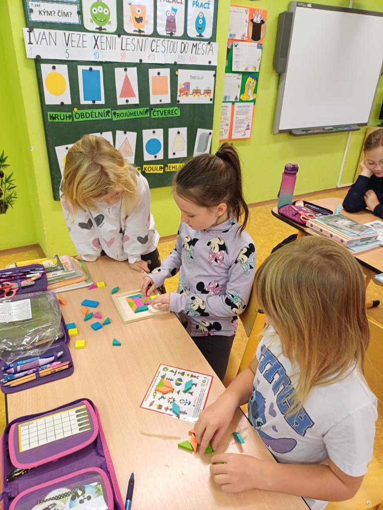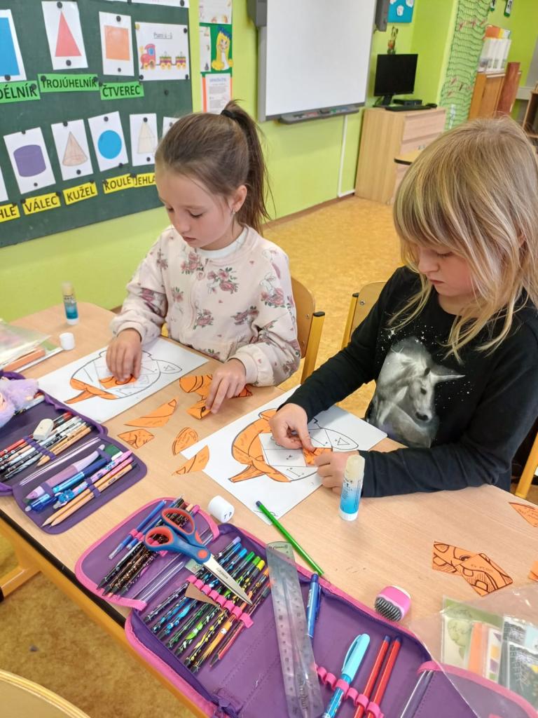 V měsíci říjnu si druháci procvičovali geometrii. Skládání geometrických tvarů doplnili skládačkami dýní a početních her.